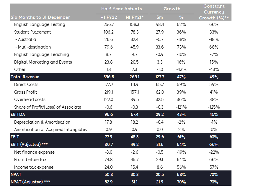 IDP’s IELTS volumes were up 79% in H1 FY22 versus the same period last year, with aspirant test takers reigniting their study and migration objectives.